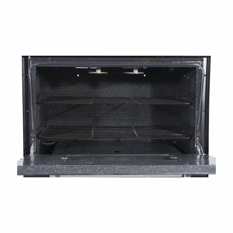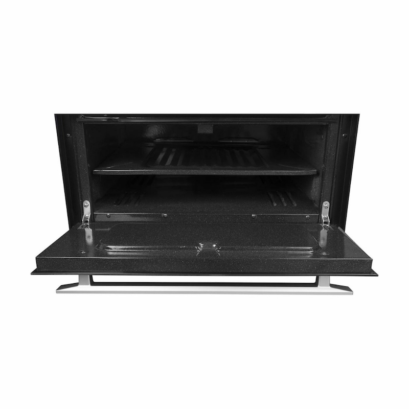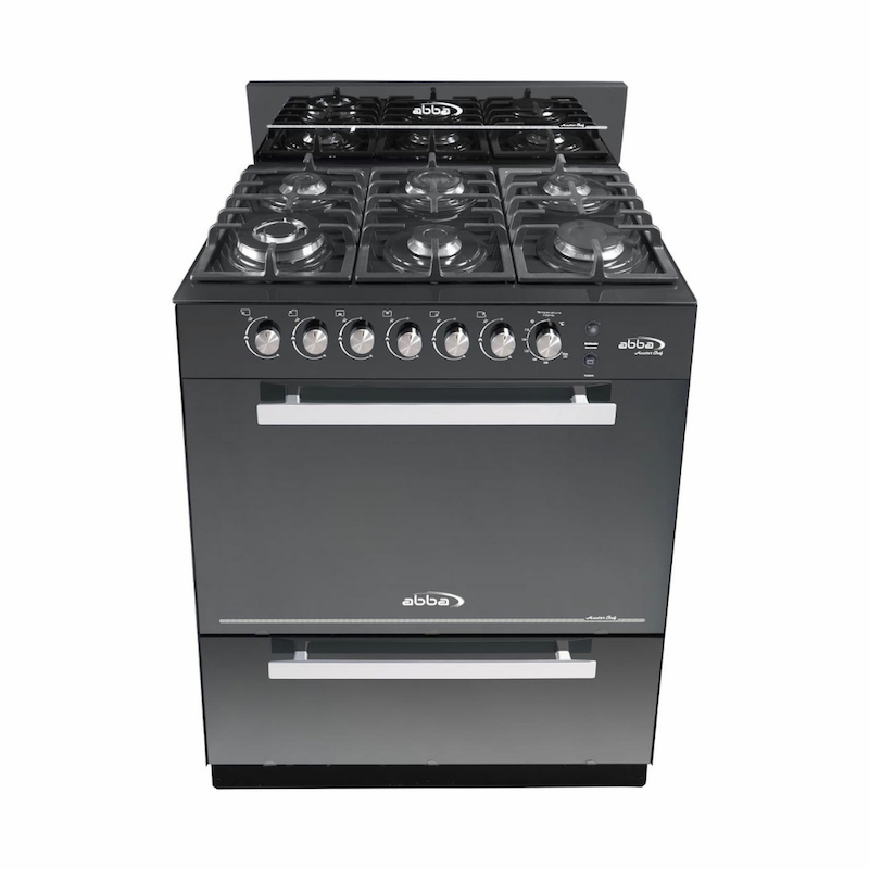 Exclusiva estufa abba master chef en vidrio, de 76 cm de ancho. enciende quemadores y horno con solo oprimir la perilla de control. Los quemadores son rápidos y reducen el tiempo de cocción. horno con amplia capacidad para cocinar, calentar y gratinar.