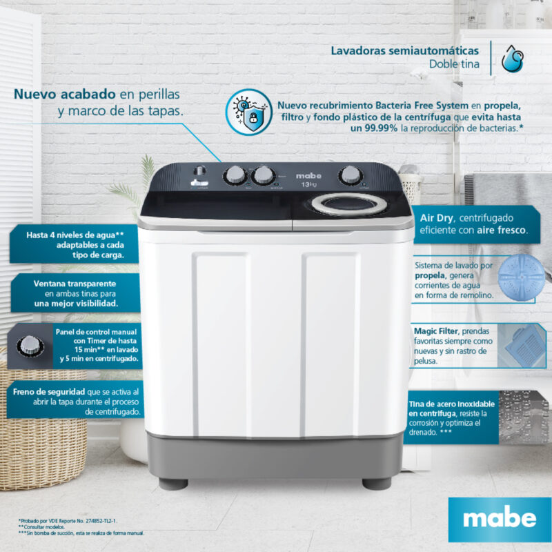 LAVADORA SEMIAUTOMÁTICA DE 13 KG BLANCA MABE